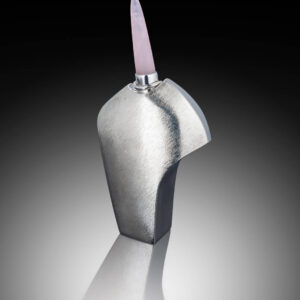 Designed and fabricated out of sterling silver, with a stopper featuring an elegantly long rose quartz.