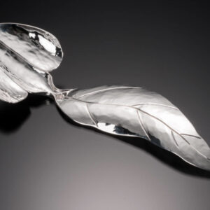 Solid sterling silver forged and chased serving spoon. Made with the inspiration of the green peppers in the garden. Heavy gauge sterling forged and formed by hand. The finished spoon is approximately 14g x 10 inches long x 2.5 inches wide.
